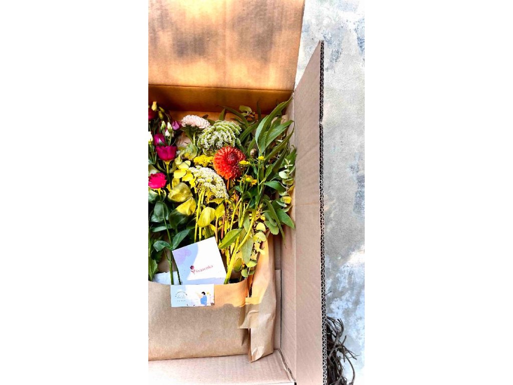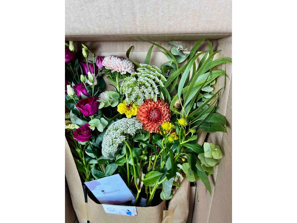 Speciální krabice plná čerstvých květin a zeleně pro všechny, kdo si chtějí sestavit vlastní kytici. Skvělý dárek i kreativní zážitek. Obsah boxu: cca 13–15 stonků sezónních květin.