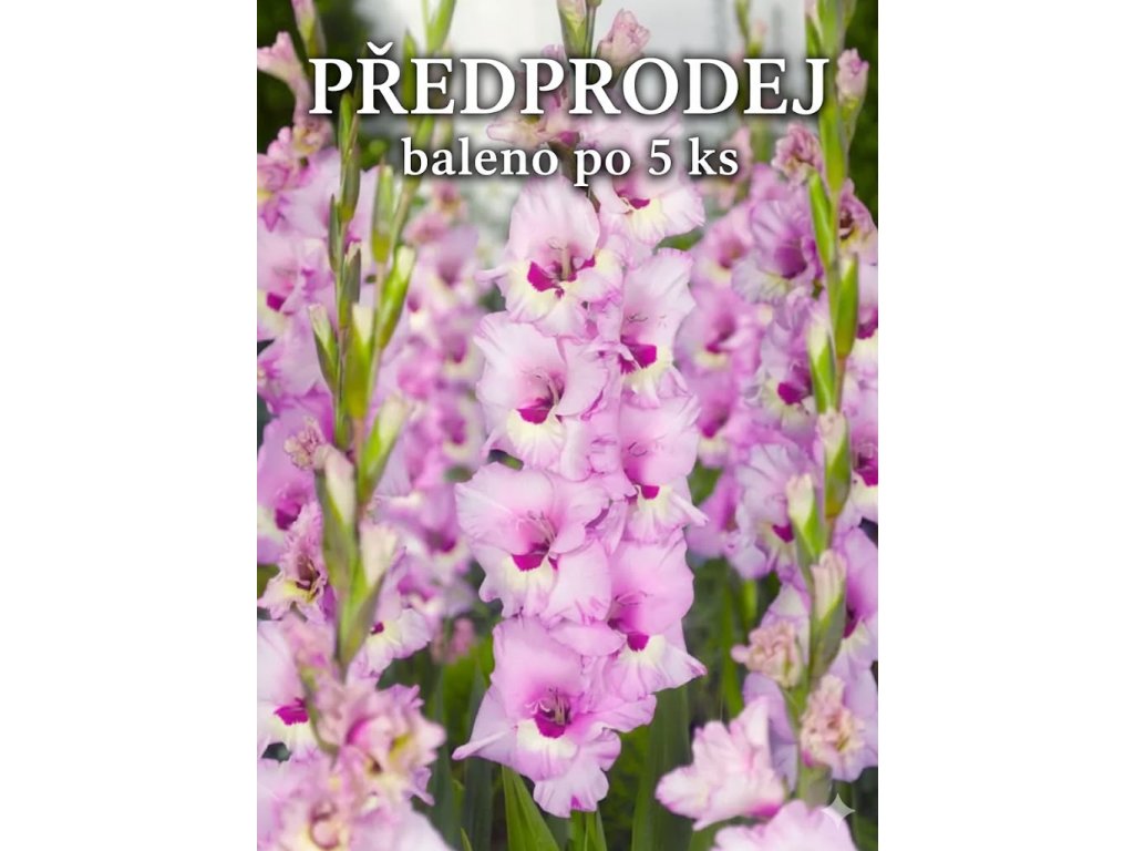 Mečík Zamora – Něžná krása s fialovým nádechem Okouzlující velkokvětý mečík s květy v tónech měkké růžové, doplněný o výrazný purpurový a krémově žlutý střed. Tato odrůda dorůstá až 150 cm a je perfektní volbou pro letní záhony i k řezu. Kvalitní hlízy, baleno po 5 kusech.